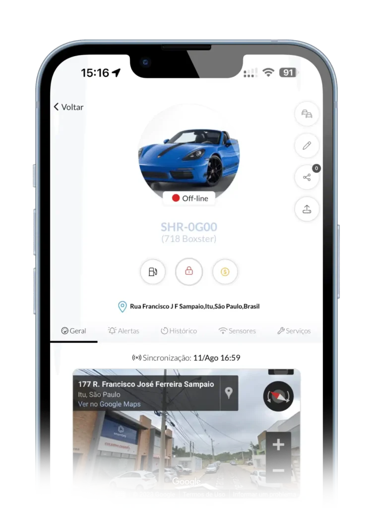 Tenha um aplicativo completo, que tras detalhamento dos locais percorridos, status do veiculo, velocidade atingida e muito mais!